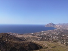 view over the bay of Monte Cofano and the area beyond, and down towards