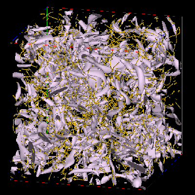 Figure 1: Skeletons and isosurfaces of the enstrophy density.