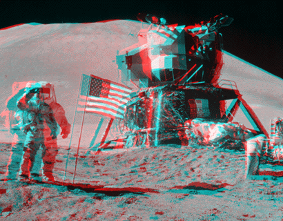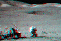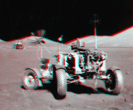 Below are some pictures from the Apollo missions. The astronauts sometimes made deliberate or accidental stereo images with their monoscopic Hasselblad camera by taking one exposure, hopping a little, and then taking a second exposure. (You can too, just not on the moon.)
